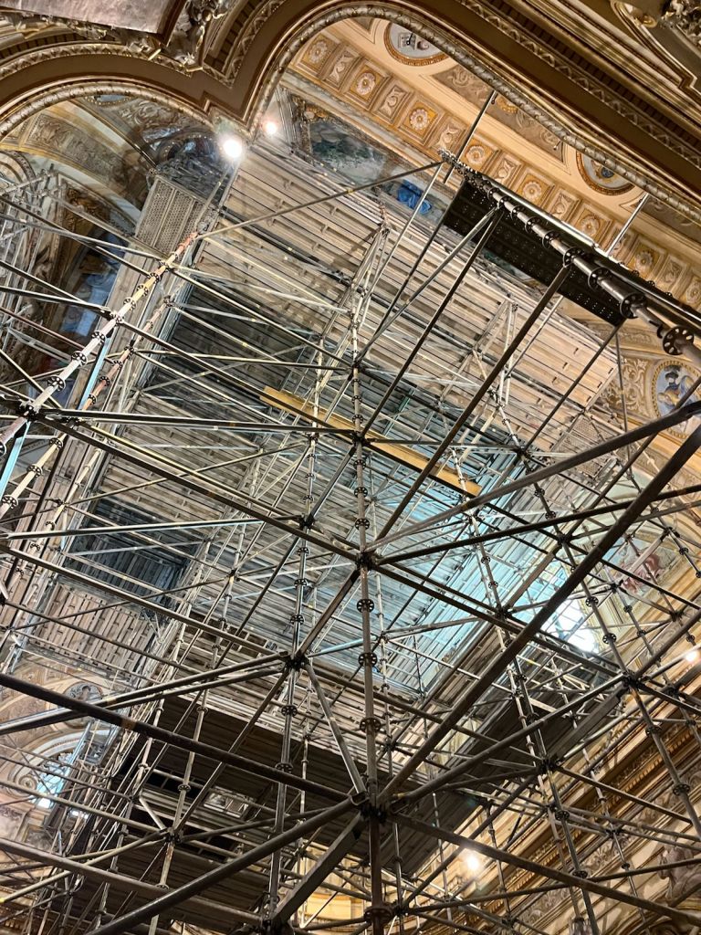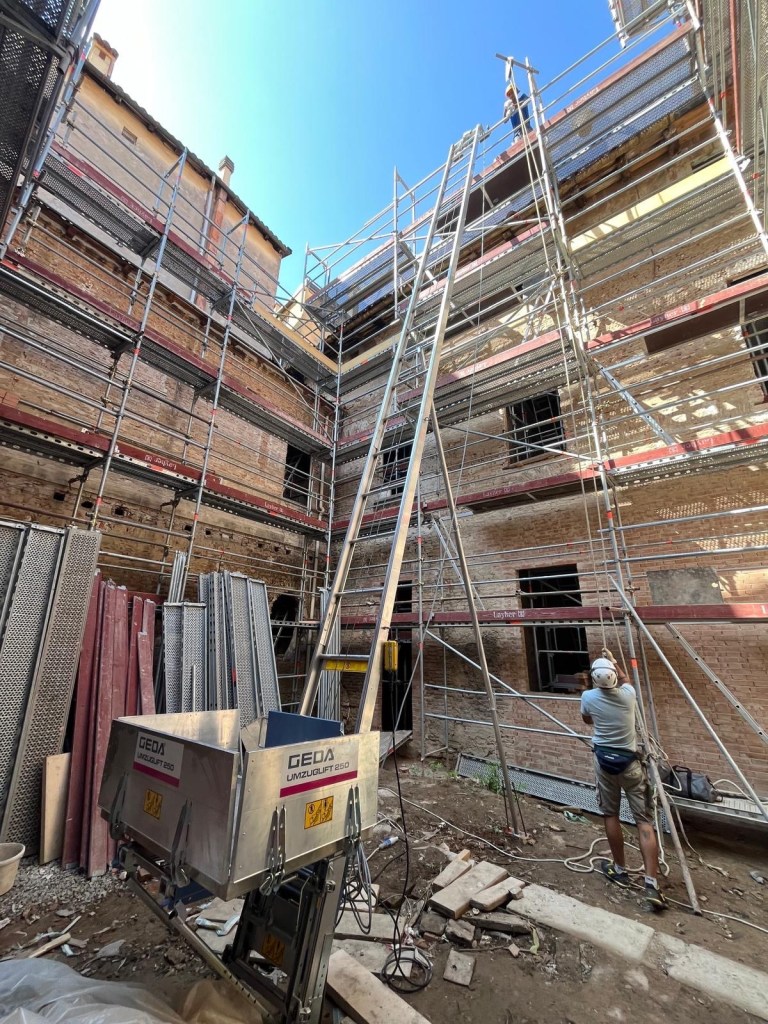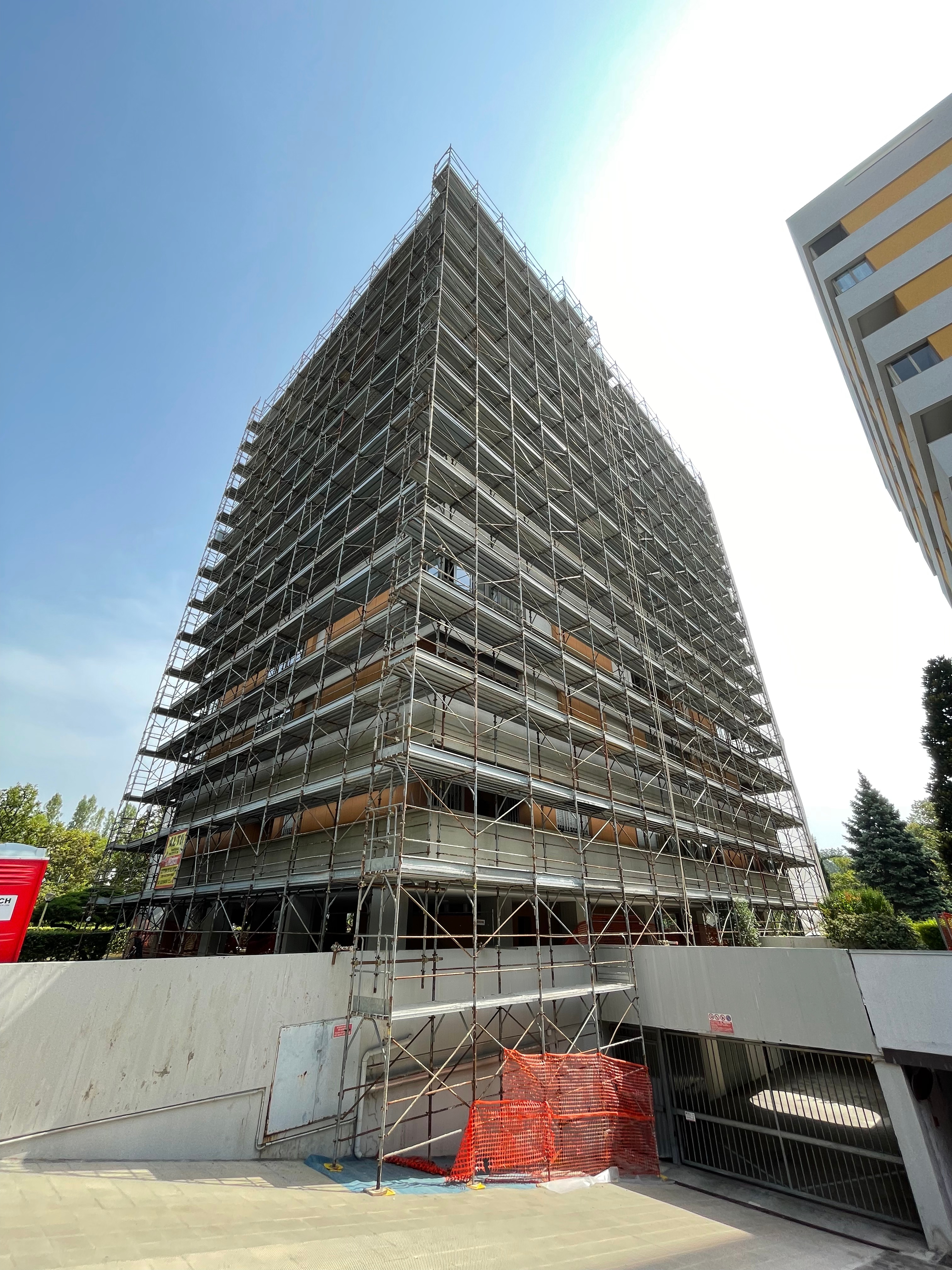 Cantiere Bologna: Trabattello Interno su Ruote con Ponteggio Multidirezionale